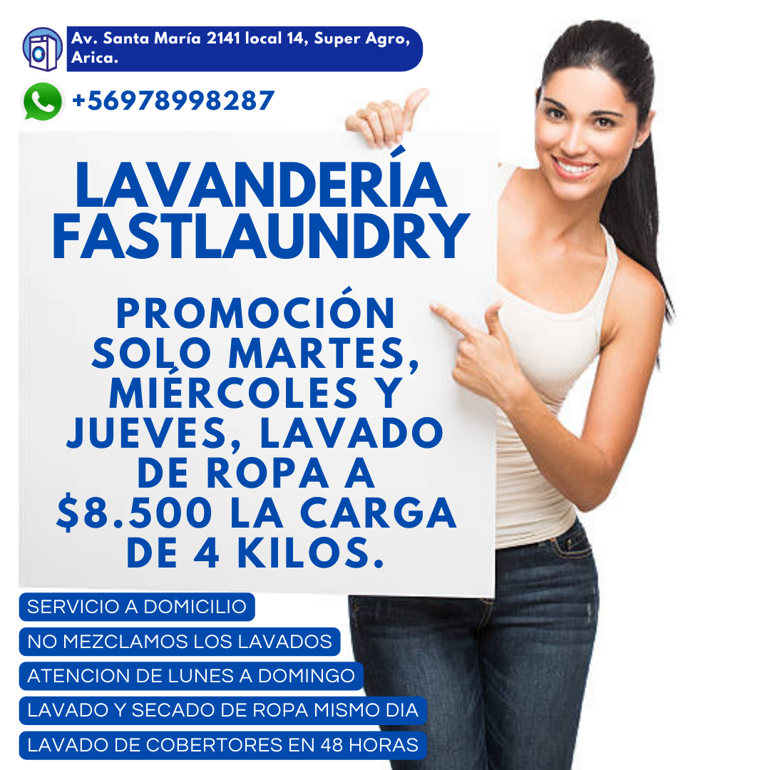 Somos la única Lavandería en Arica que atiende de Lunes a Domingo y Feriados