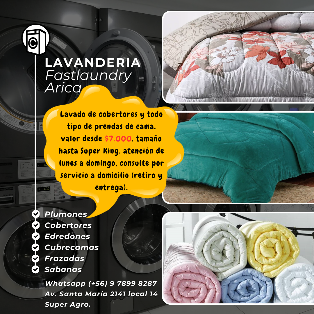 Somos la única Lavandería en Arica que atiende de Lunes a Domingo y Feriados
